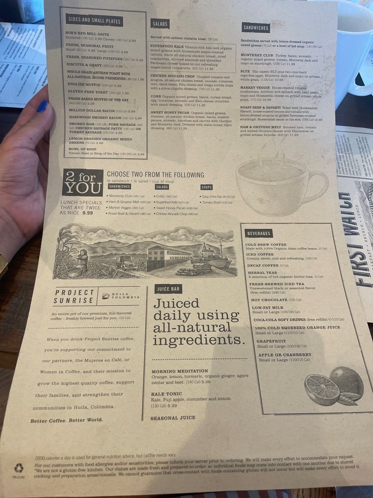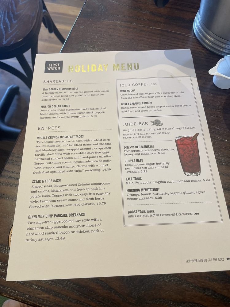 For those seeking healthier choices, options like the Power Wrap and AM Superfoods Bowl offer both nutrition and taste. With a cozy ambiance and attentive service, First Watch Union ensures a delightful dining experience that leaves you eager for your next visit.